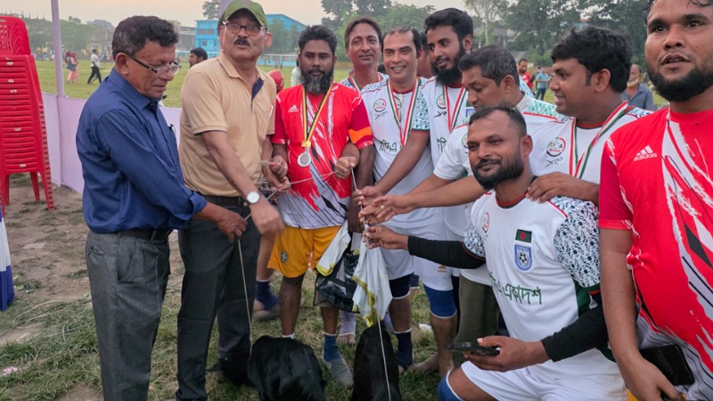 খেলা শেষে বিজয়ী দলের খেলোয়াড়দের হাতে পুরস্কার তুলে দেন অতিথিরা। প্রাণবন্ত এ ম্যাচ উপভোগ করেন উপস্থিত দর্শকরা।