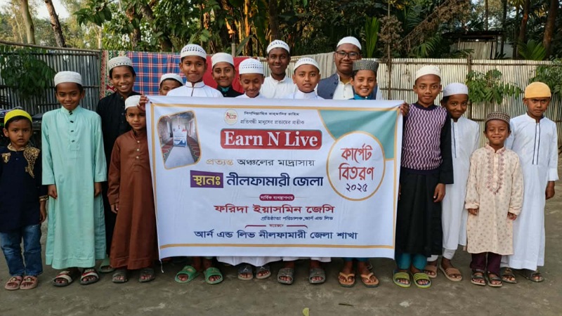 সোমবার (২২ ডিসেম্বর) ডোমার উপজেলার ভোগডাবুড়ী ইউনিয়নে অবস্থিত মাদ্রাসা প্রাঙ্গণে এ বিতরণ কার্যক্রম অনুষ্ঠিত হয়। সংস্থাটির প্রতিষ্ঠাতা পরিচালক ফরিদা ইয়াসমিন জেসির সার্বিক ব্যবস্থাপনায় এবং আর্ন এন্ড লিভ নীলফামারী জেলা শাখার আয়োজনে মাদ্রাসাটির শিক্ষার্থীদের হাতে কার্পেট তুলে দেওয়া হয়।