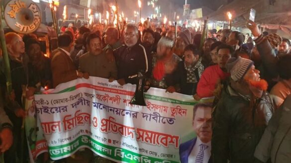 একই দিন বিকালে ডোমার উপজেলার গোমনাতি বাজারে সড়ক অবরোধ করে টায়ার জ্বালিয়ে বিক্ষোভ করেন ধানের শীষের কর্মী-সমর্থকরা। সেখানে বক্তব্য দেন উপজেলা কৃষক দলের সভাপতি আফজাল হোসেন চৌধুরী হিরু, গোমনাতি ইউনিয়ন বিএনপির ভারপ্রাপ্ত সভাপতি ইদ্রিস আলী চৌধুরী লেবু প্রমুখ।